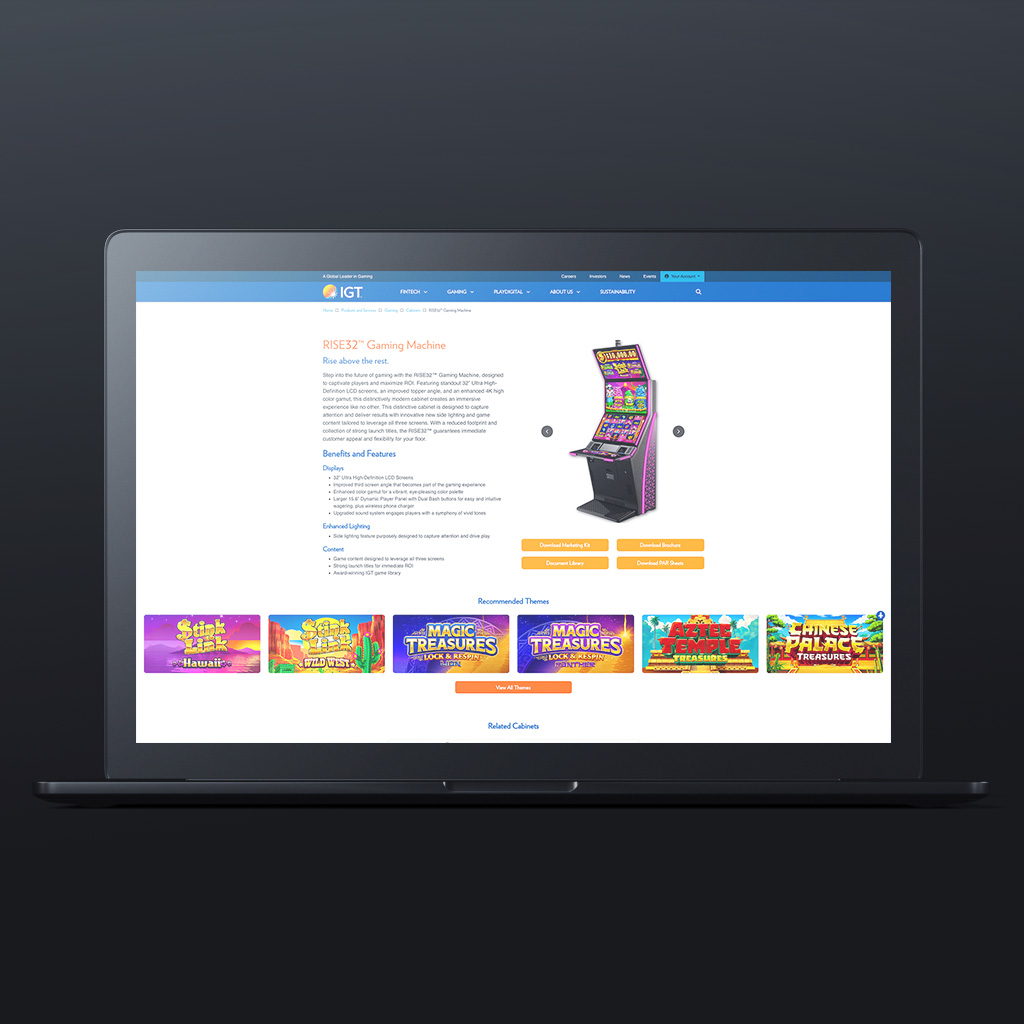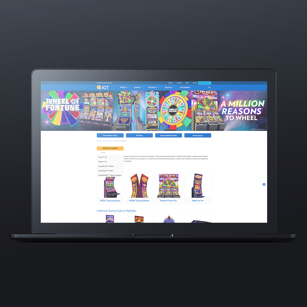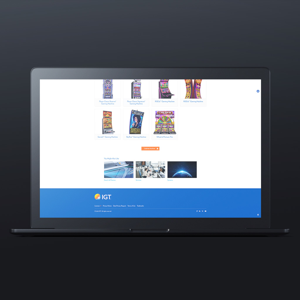 IGT Cabinets Template is a comprehensive template restructured to enhance user experience and streamline navigation for IGT's cabinet products. The redesign focuses on a clean layout, intuitive navigation, and engaging visuals to effectively showcase the cabinet offerings.