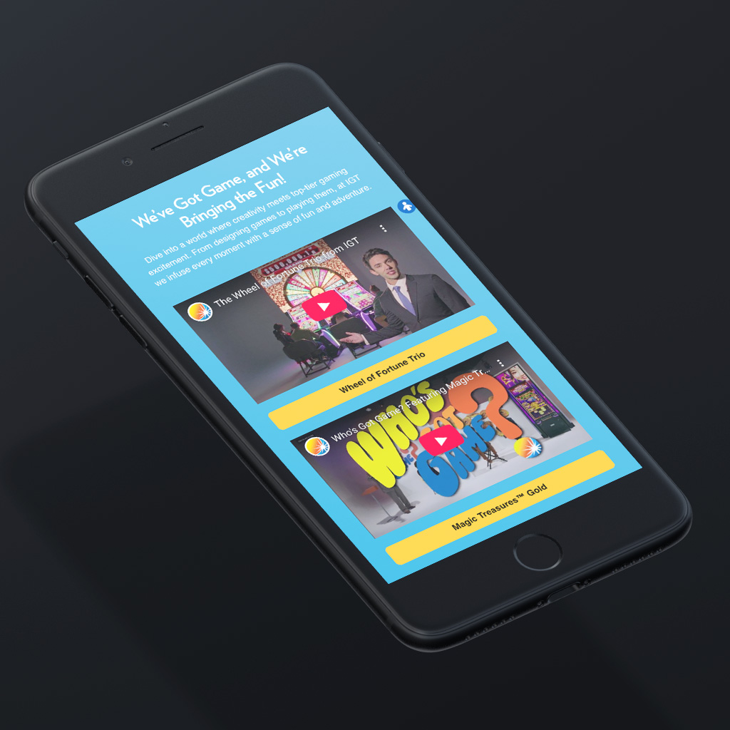 A modern redesign of the International Game Technology (IGT) homepage, focusing on improved user experience and visual appeal. The redesign incorporates a clean layout, intuitive navigation, and engaging visuals to effectively showcase IGT's products and services.